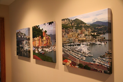 We've been wanting to put some pictures up in the hallway on the second floor but just have never gotten around to it. I finally ordered some big prints in canvas wrap style. They arrived today and we hung them. We're both quite pleased with the way they came out.